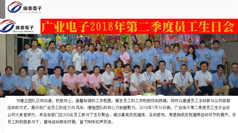 熱烈祝賀廣業(yè)電子第二季度員工生日會(huì)舉行
